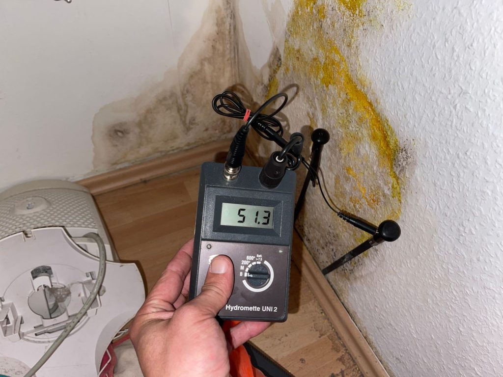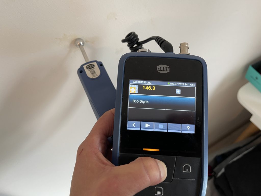 Eine Messung verrät, ob das Mauerwerk von Feuchtigkeit betroffen ist.
